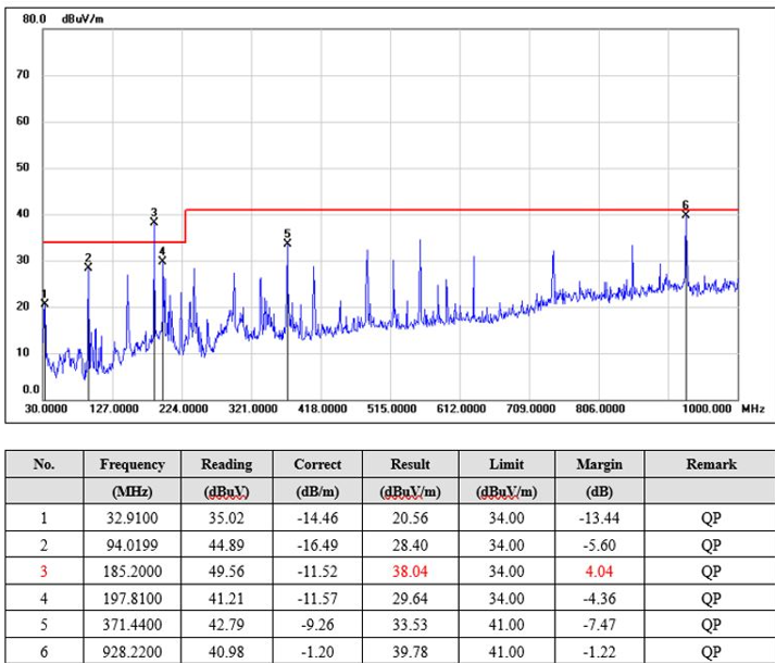 - 低频风险: 根据实验室经验,线缆最容易在 185MHz 频段(对应 1080P@60Hz 影像)发生问题。这意味着即使是一般规格线缆,若未加测 EMI,仍存在高度干扰风险。