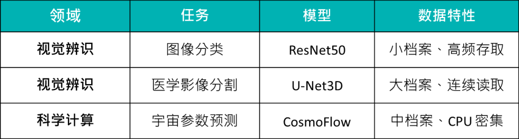 • 医学影像 (U-Net3D):针对大档案、连续读取吞吐量。