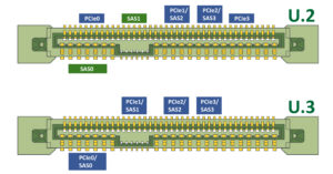 1. 2/U.3:同样的在服务器产业中的储存接口上,也从原本的SFF-8639 SATA/SAS 慢慢的演进成内含NVMe PCIe接口的U.2 / U.3。