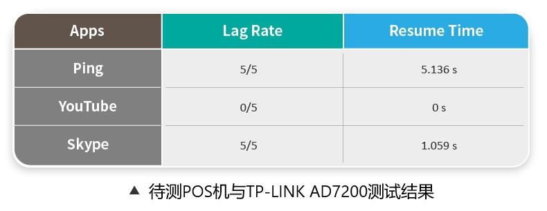 不论是YouTube看串流影片,或是Skype网络电话(因为POS机无前镜头,无法执行视讯电话),在Roaming发生时,皆会有中断,须等待时间恢复。相较于待测AP,待测POS机与TP-Link AP恢复连线比较快,YouTube不会断线、Skype恢复连线也相对快很多。