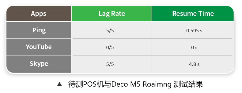 d. 在Roaming方面,待测POS机搭配市售AP(TP-Link Deco M5)的Roaming有发生断线状况,需要短暂时间重新连线。这里对于第一线卖场上POS机的使用稳定度上是一个非常大的潜在问题。